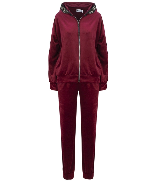 Dámská velurová tepláková souprava složená z mikiny a kalhot.
