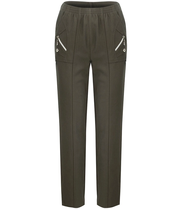 Z przodu dwie kieszenie ozdobione guzikiem i suwakiem