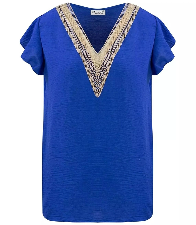 Halenka s krátkým rukávem a pleteným výstřihem do V