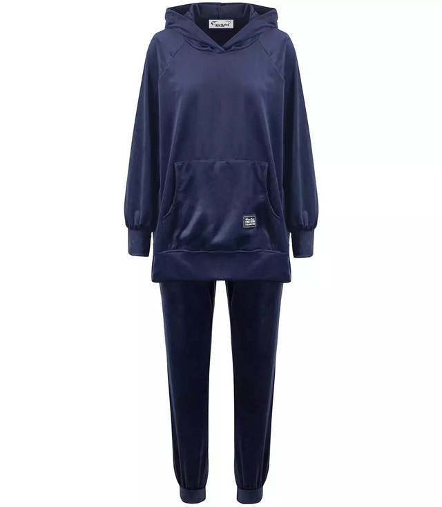 Dámská velurová tepláková souprava složená z mikiny a kalhot.