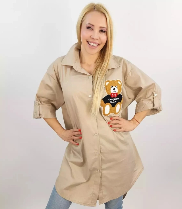 Na přední straně je velká ozdobná nášivka s medvídkem