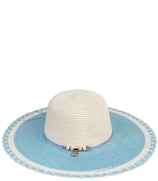 Velký slaměný klobouk se širokou krempou ve dvou barvách