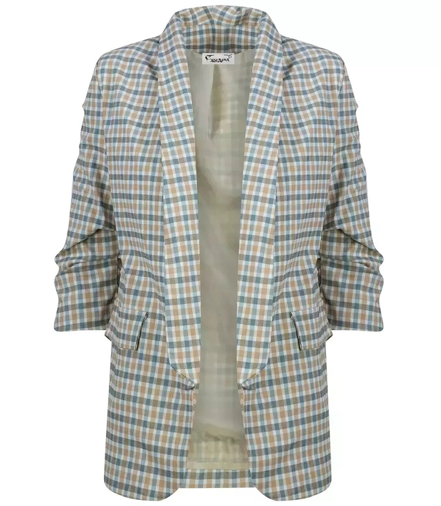Kostkované sako s přehozenými 3/4 rukávy