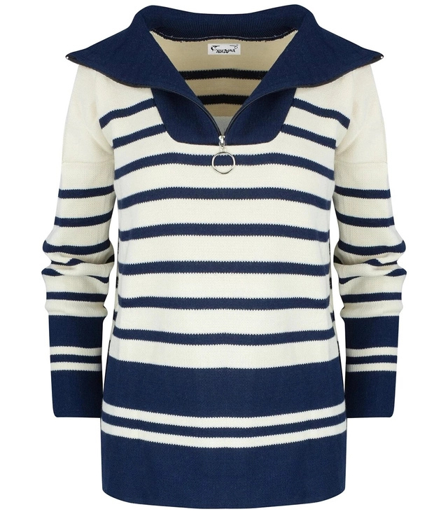Jednoduchý svetr volného střihu s prodlužovacím rolákem