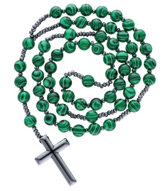 Růžencový náhrdelník s přívěskem z malachitu s nastavitelnou délkou