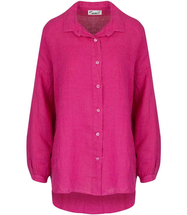 Dlouhá volná plátěná košile plátěná delší zadní dlouhý rukáv LAILA 2