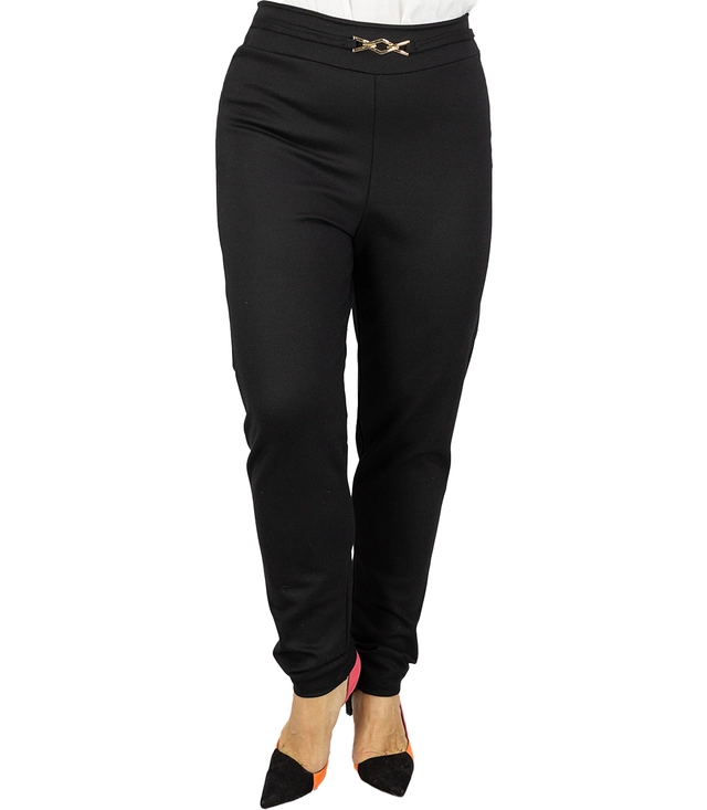 • Elegantní černé dámské kalhoty s jemnými zlatými akcenty.<br />Skvěle se hodí ke kombinaci s elegantními halenkami, saky nebo ležérními topy.
