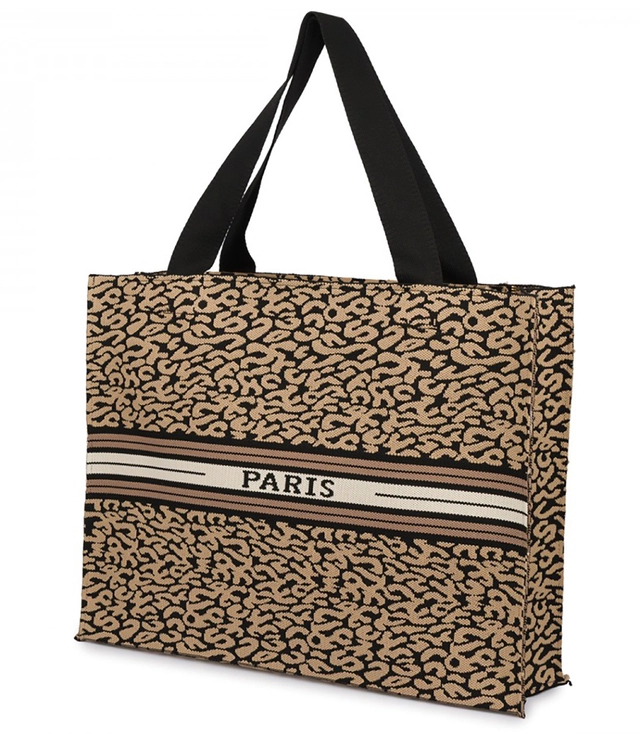 Stylová nákupní taška s leopardím potiskem a nápisem PARIS
