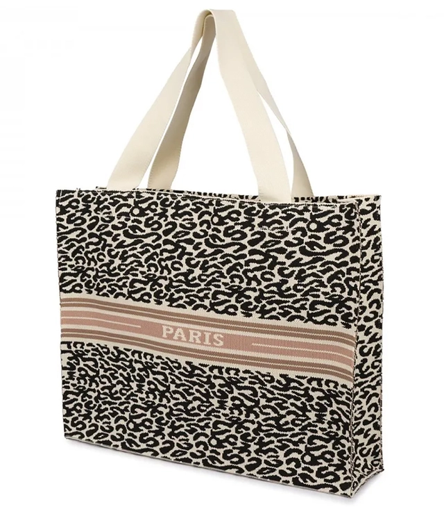 Stylová nákupní taška s leopardím potiskem a nápisem PARIS