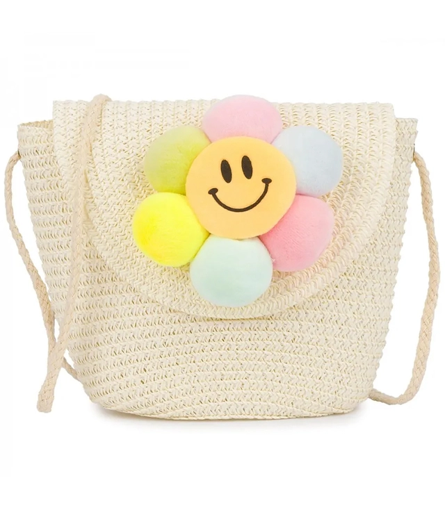 Dětská boho slaměná kabelka s květinou letní dívčí taška přes rameno