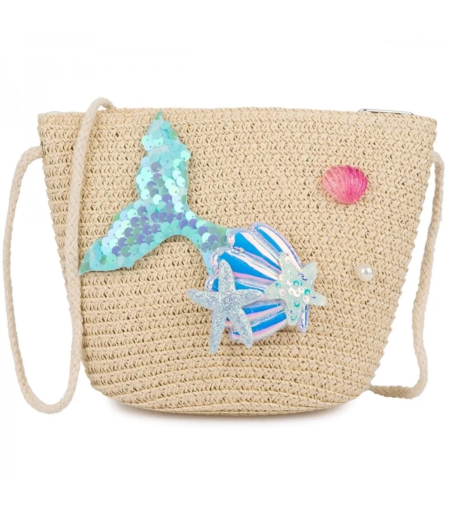 Dětská slaměná kabelka s ocasem mořské panny a mušlemi