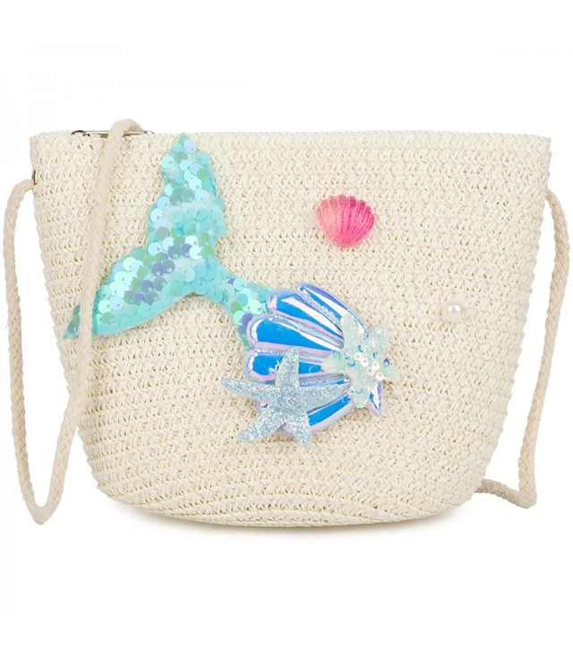 Dětská slaměná kabelka s ocasem mořské panny a mušlemi