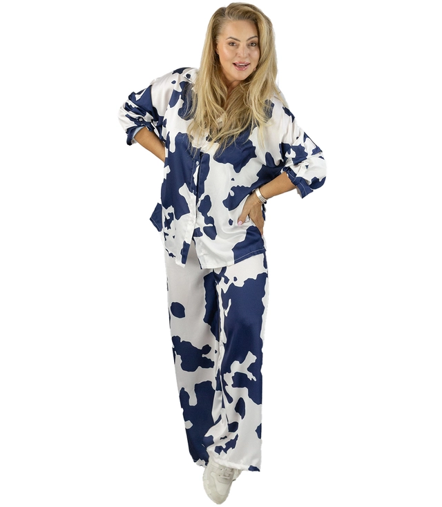 Módní sada saténové košile a kalhot s kravským potiskem SLOANE