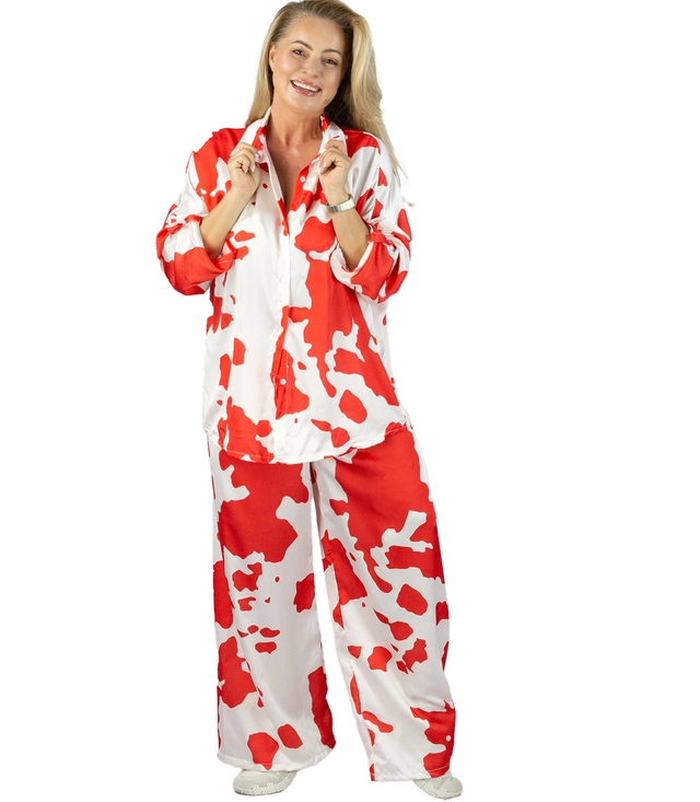 Módní sada saténové košile a kalhot s kravským potiskem SLOANE
