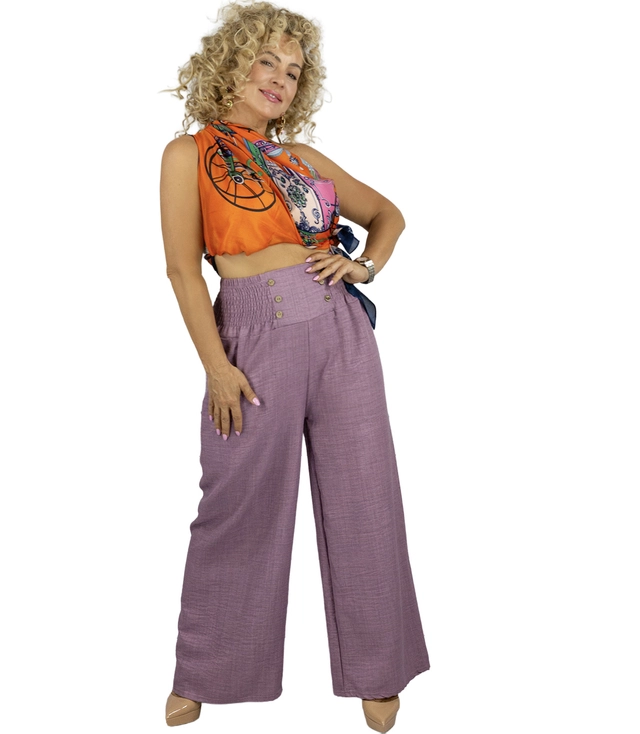 Volné dámské palazzo kalhoty s širokou nohavicí a vysokým nártem LENA