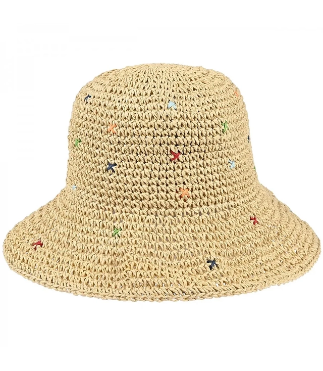 Dámský letní klobouk z pletené rafie s barevnou výšivkou BUCKET HAT