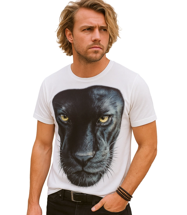 Nápadité pánské tričko s realistickým potiskem pantera po celé přední straně.