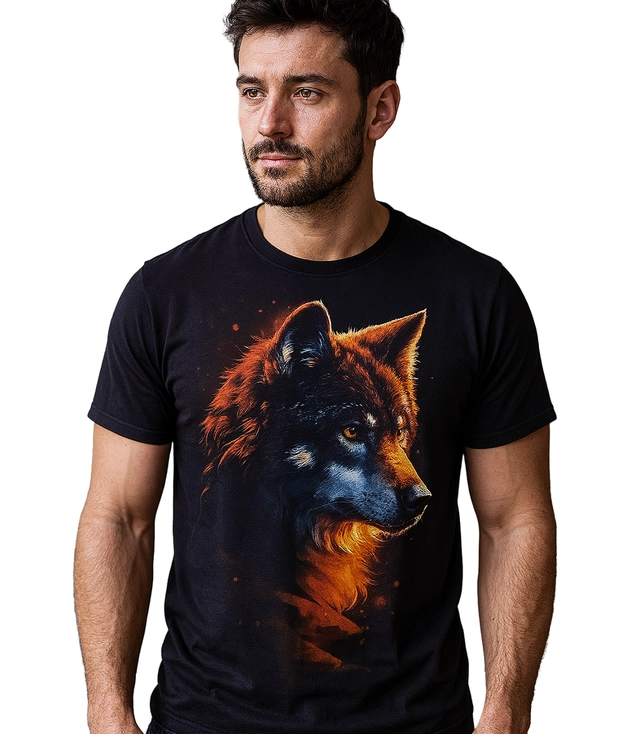 Stylové pánské tričko s výrazným potiskem vlčí hlavy v intenzivních barvách.
