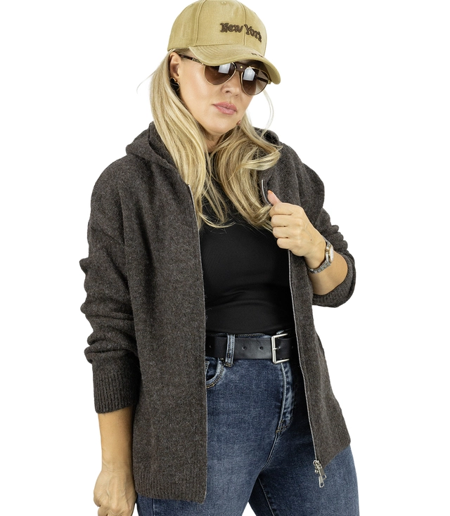 Má kapuci, oboustranný zip po celé délce a mírně volný střih - ideální k džínům, legínám nebo dokonce sukním.