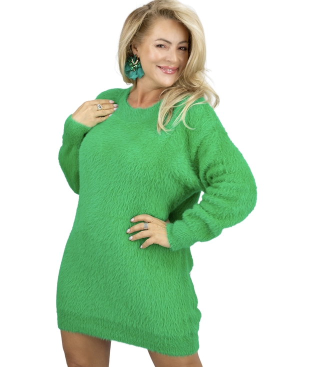Nadýchaný svetr pletené šaty kulatý výstřih FLUFFY