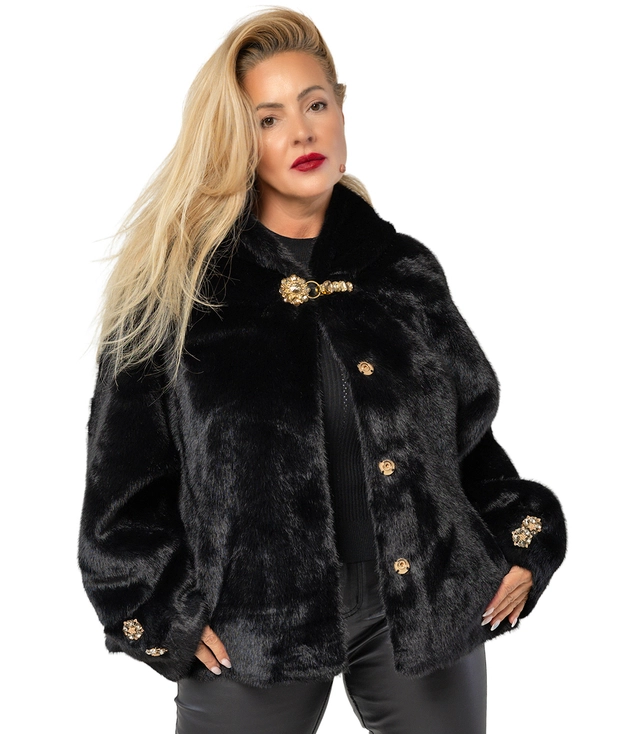 Aurora je kožich, který v sobě spojuje eleganci a pohodlí. Objemný tvar krásně sedí na postavě, zatímco zlaté knoflíky a ozdobné zapínání mu dodávají královský nádech. Měkká, nadýchaná kožešina vás zahalí do tepla, takže se hodí pro chladnější dny a zvláštní příležitosti. Aurora je určena pro ženy, které rády vynikají elegancí a jedinečným stylem.