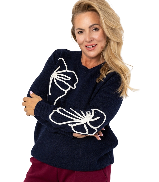 Dámský klasický svetr s 3D květinovou aplikací CLASSIC BLOOM