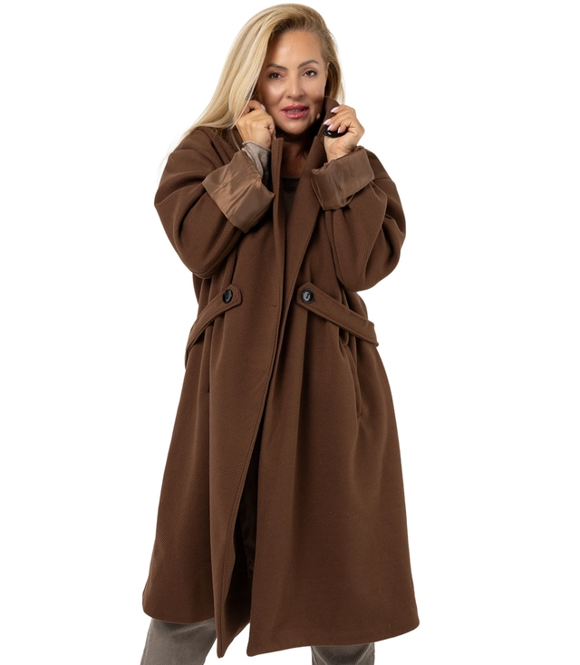 Dámský dlouhý kabát nadměrné velikosti s ozdobným páskem KASIA