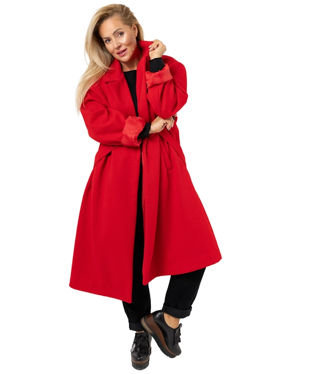Dámský dlouhý kabát nadměrné velikosti s ozdobným páskem KASIA