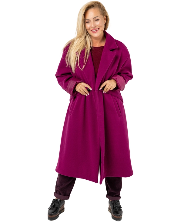 Dámský dlouhý kabát nadměrné velikosti s ozdobným páskem KASIA