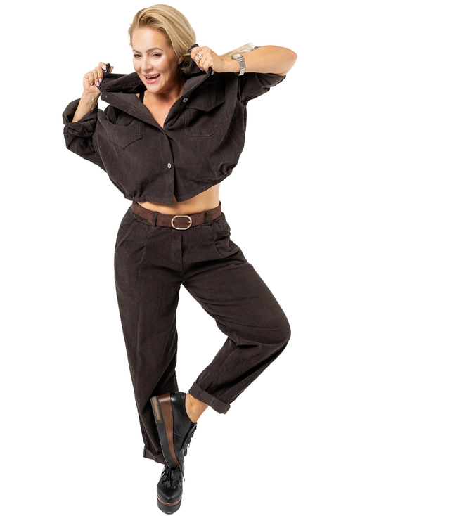 Manšestrová souprava kalhot s páskem a bundokošile CHICA