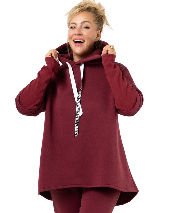 Mikina "Veronica" je kvintesencí luxusu ve sportovním vydání. Její objemný střih poskytuje plné pohodlí a volnost pohybu a zároveň vypadá mimořádně stylově. Jedinečné šňůrky s motivem meandrů dodávají mikině charakter a umožňují rychlý přechod z ležérního casualu do stylovějšího outfitu