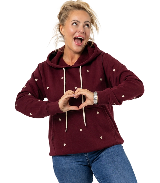 Mikina "Valentine" je kombinací mladistvé zábavy a sportovního pohodlí. Malá srdíčka ve výšivce dodávají mikině šarm a optimismus, takže je ideální volbou pro každodenní nošení. Je ideální volbou pro ženy, které ocení pohodlí, ale nechtějí se vzdát originálních detailů