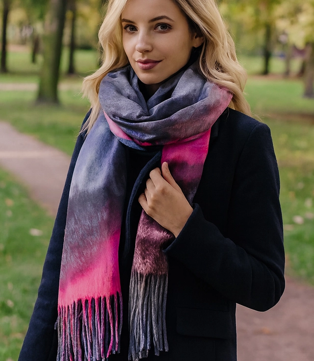 Šála ve stylu tie dye je ideální volbou pro ty, kteří oceňují originalitu a módní, ležérní dojem z každého oblečení.
