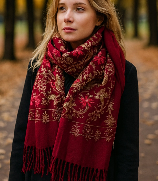Šátek je po celé délce zdoben jemným lidovým květinovým vzorem, který upoutá pozornost a dodá stylingu etnický nádech. Ozdobné střapce podtrhují ženskost a dodávají celkovému vzhledu ležérní, boho atmosféru. Díky svým univerzálním rozměrům jej můžete nosit jako šálu na kabát, přehoz přes šaty nebo nápadnou zavinovačku na ramena.