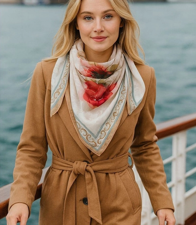 Elegantní dámská šála se šíleným vzorem 70x70 je doplňkem, který okamžitě promění každý outfit. Jemná látka krásně splývá a květinový motiv s půvabnými květy dodává luxusní nádech. Čtvercový formát 70x70 cm umožňuje uvázat šátek různými způsoby - klasicky kolem krku, jako čelenku do vlasů, doplněk na zápěstí nebo jako výrazný akcent na kabelku. Pečlivě zakončené okraje podtrhují jeho elegantní, ženský styl, takže se skvěle hodí ke kabátu i lehkému saku. Je to dokonalý nápad na stylový dárek pro ženu, která ocení módní a nadčasové doplňky.