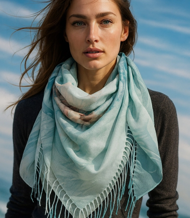 Šátek je vyroben ze 100% měkkého polyesteru, je příjemný na dotek, snadno se udržuje a nemačká, takže je ideální pro každodenní použití i cestování. Jemné střapce na okrajích dodávají lehkost a pohyb při každém kroku. Jedná se o dokonalý nápad na elegantní dárek pro ženu, která ocení nadčasové doplňky a ráda podtrhne svůj styl jemnými detaily.