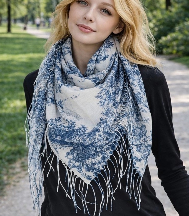 Hustý květinový motiv na šátku mu dodává rafinovaný charakter a jemně odkazuje na přehlídková mola. Je ideální volbou pro jarní dny s trenčkotem, ramoneskou, sakem nebo lehkým svetrem. Díky všestrannému stylu je šátek ideální také jako nápad na dárek pro stylovou ženu, která ocení nadčasové doplňky s jedinečným vzorem.