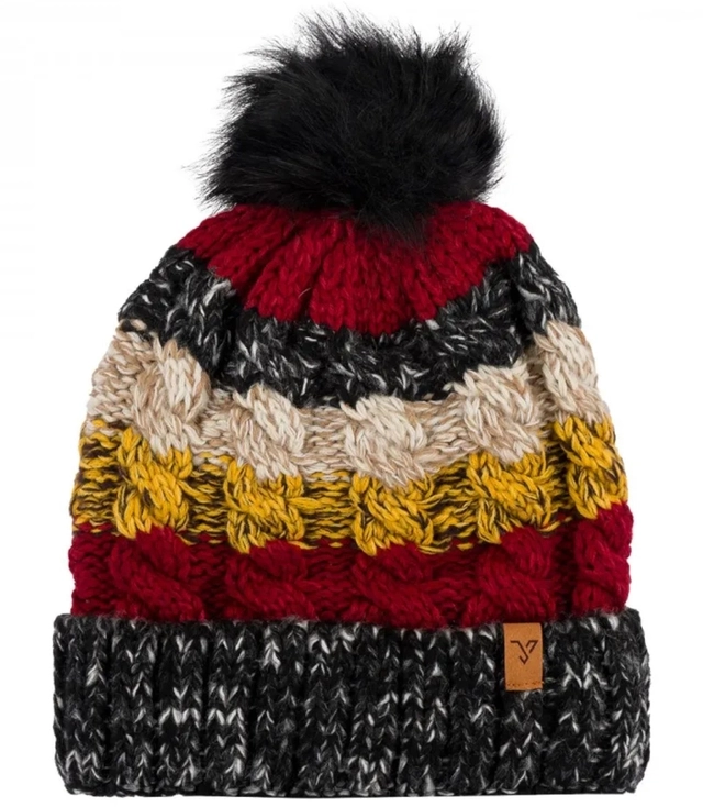 Teplá dámská zimní čepice s bambulí s podzimními barevnými pruhy