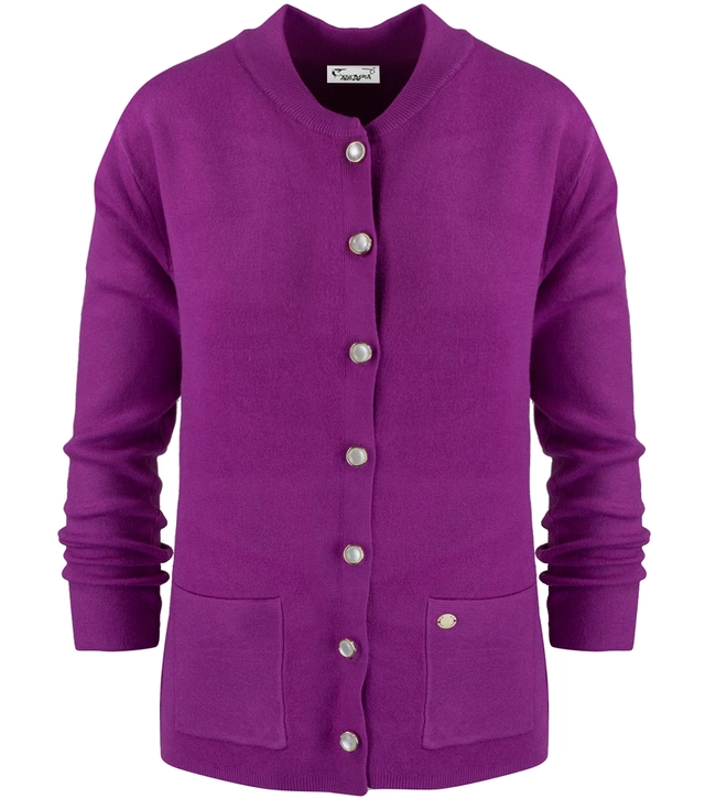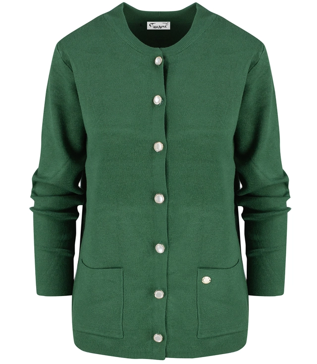 Stylový svetr AZALIA se zapínáním na knoflíky a ozdobným lemem