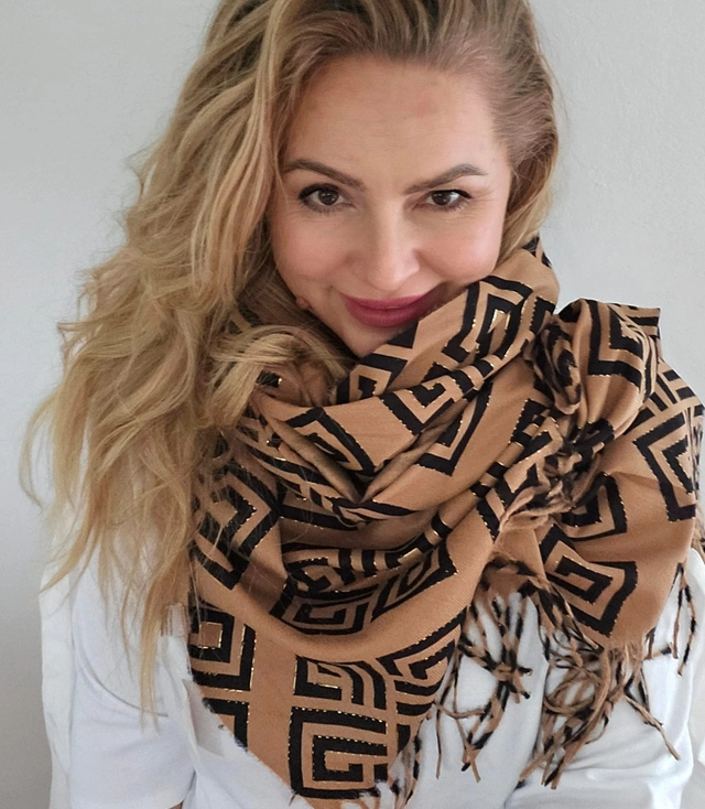 Stylový teplý šátek Geometrický vzor měkký hladký 180x70 cm
