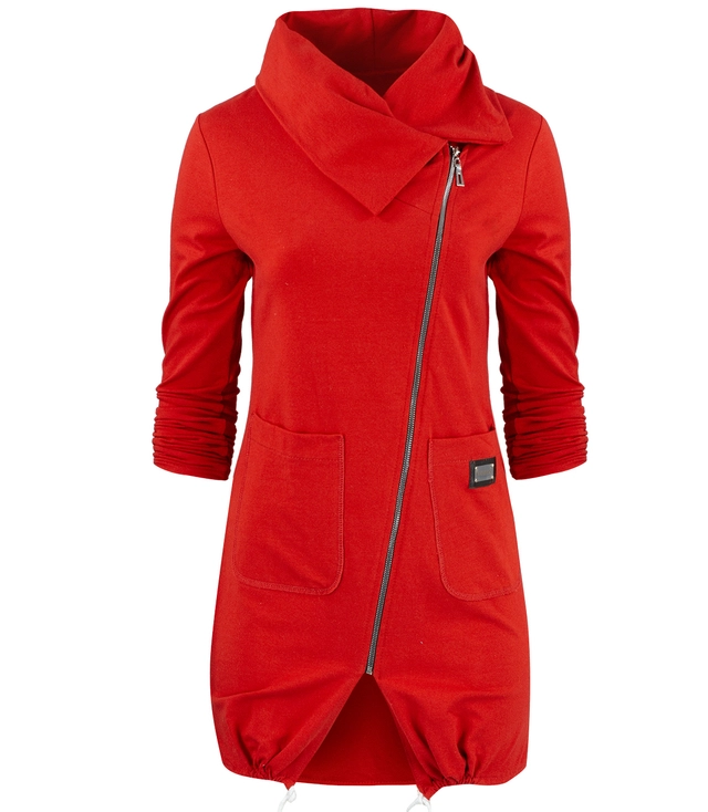 Tenká dlouhá mikina s šikmým zipem a nákrčníkem BEATA