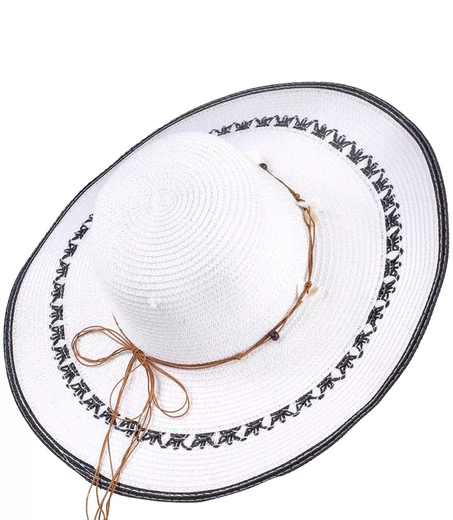Módní velký pletený klobouk s mušlemi a prolamováním