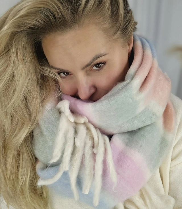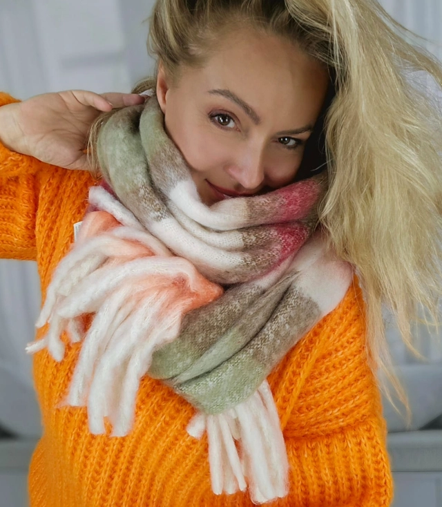 Teplá šála, pruhy, nadýchaný úplet