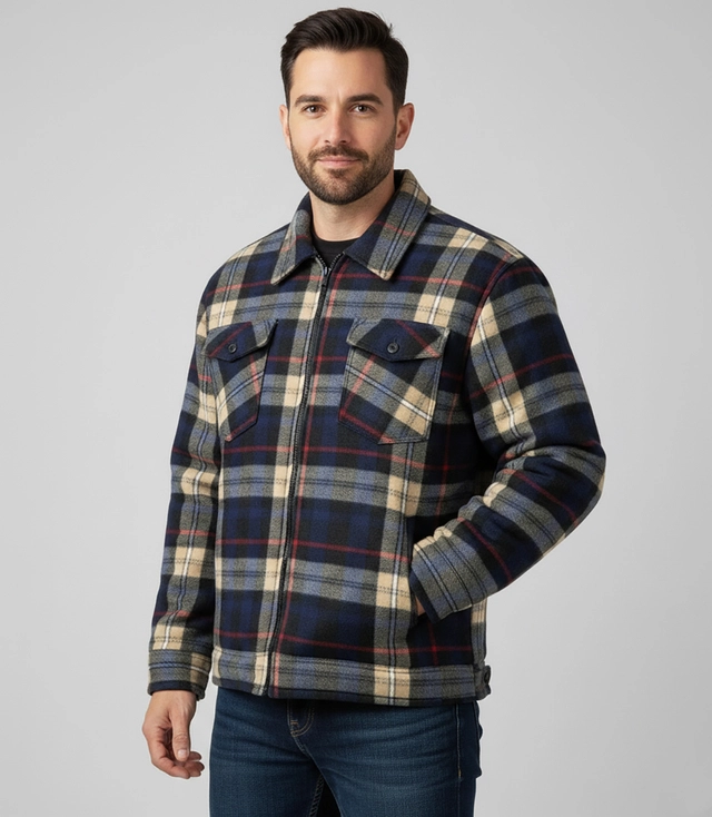 Teplá fleecová kostkovaná pánská košile zateplená kožešinou