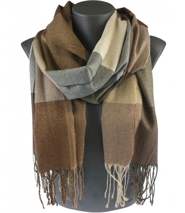 Teplá šála s geometrickým vzorem lesklá nit měkká 180x70 cm