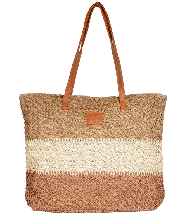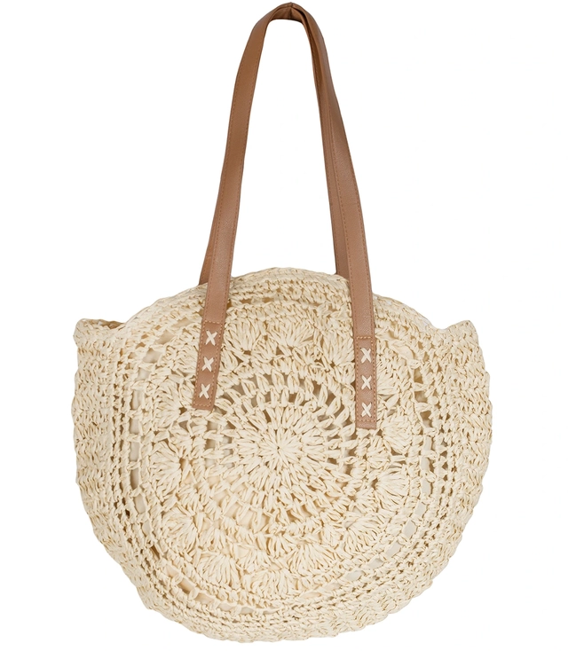 Velká kulatá plážová taška ze slámy, tkaná s prolamovaným vzorem