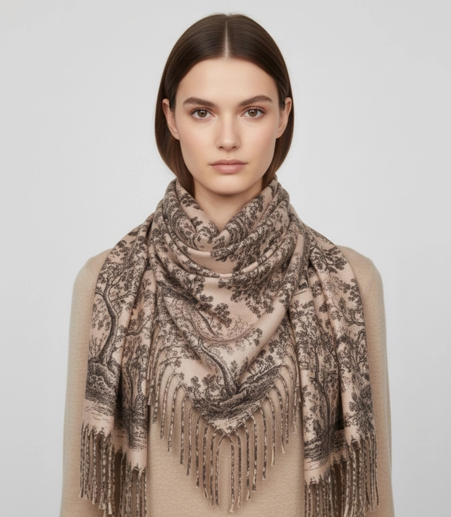 Elegantní květinová šála se střapci