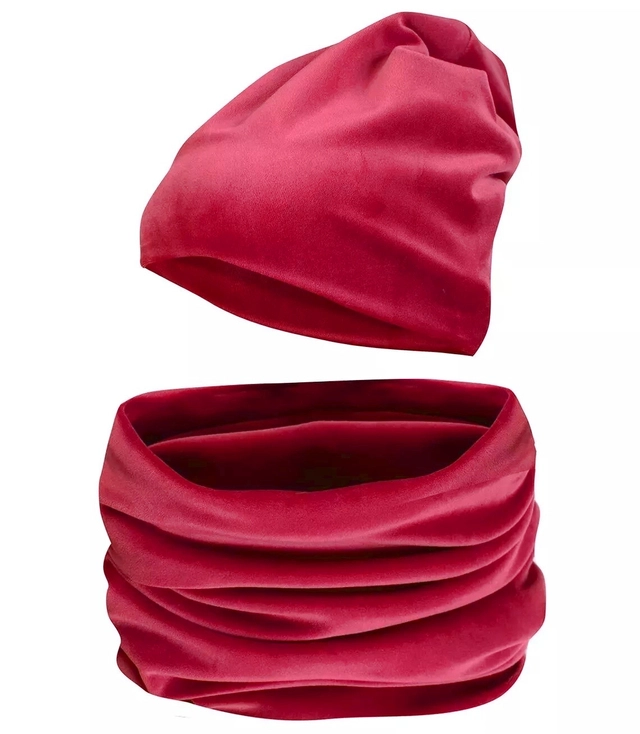 Velurová zimní souprava čepice a chňapky jednobarevná