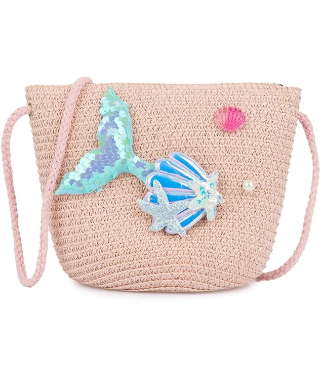 Dětská slaměná kabelka s ocasem mořské panny a mušlemi