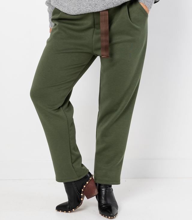 Dámské látkové kalhoty banánového střihu s páskem LILIANA